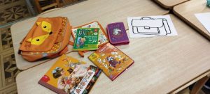 Цели: Развивать умение фантазировать на школьную тему,представлять и изображать в рисунке свой будущий портфель,а так же воспитывать заинтересованность школьными принадлежностями.