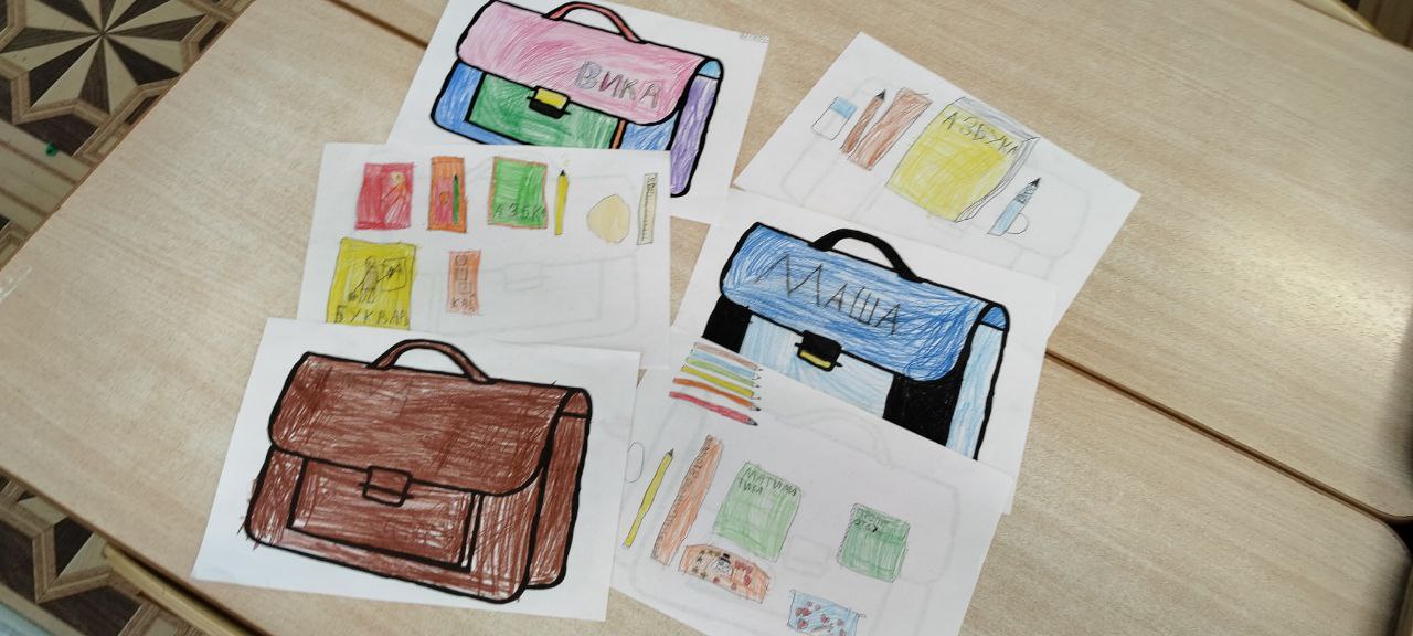 Цели: Развивать умение фантазировать на школьную тему,представлять и изображать в рисунке свой будущий портфель,а так же воспитывать заинтересованность школьными принадлежностями.