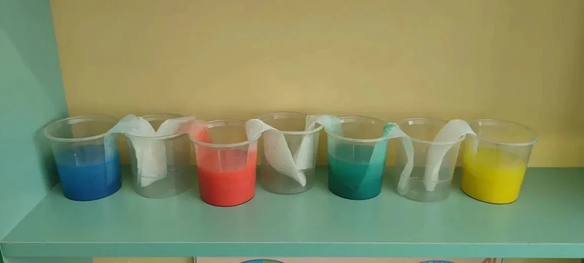 Материал:Вода,гуашь,сахар,салфетки,цветная бумага.